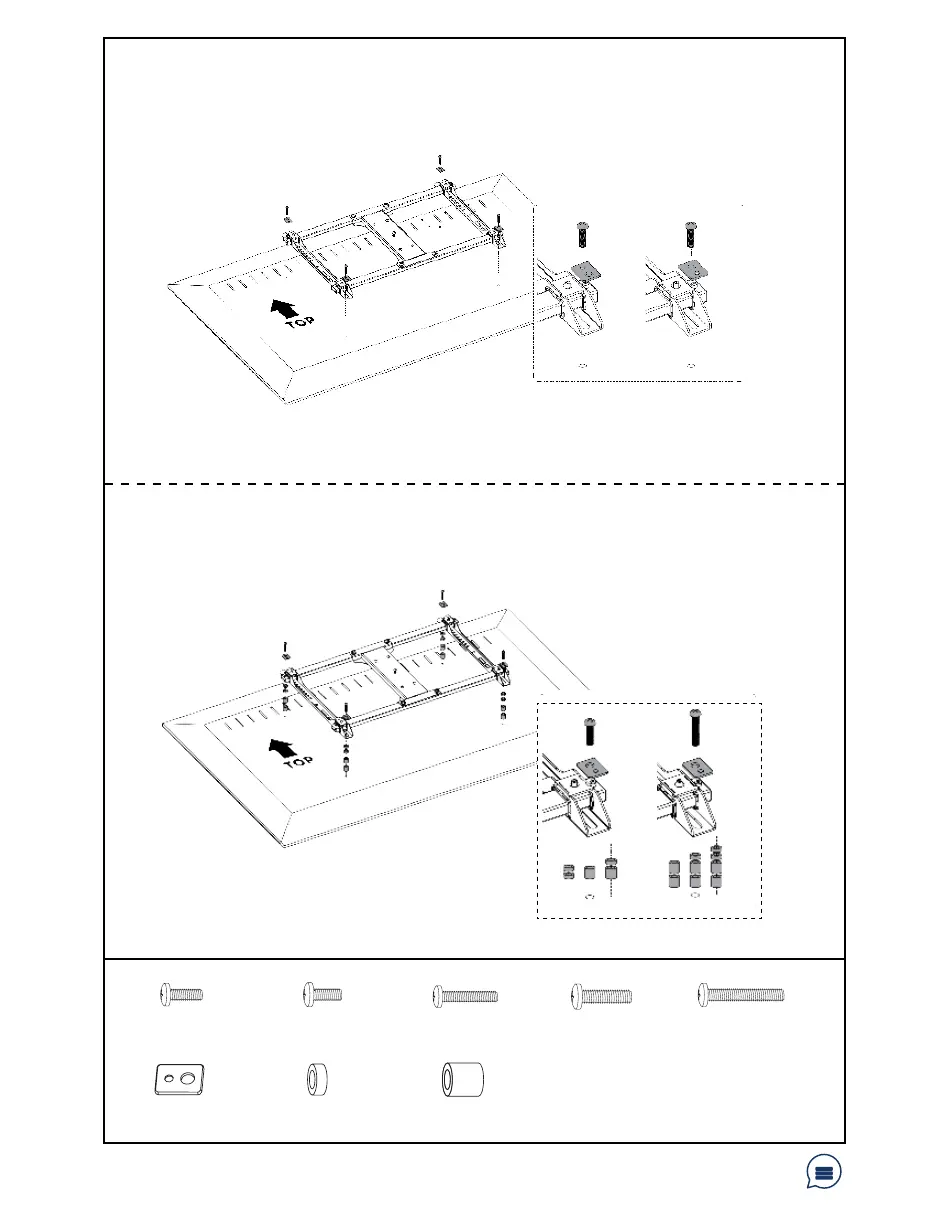 assembly to TV using appropriate screws (M-C, M-D, M-E), Square Washers (M-F) and Spacers