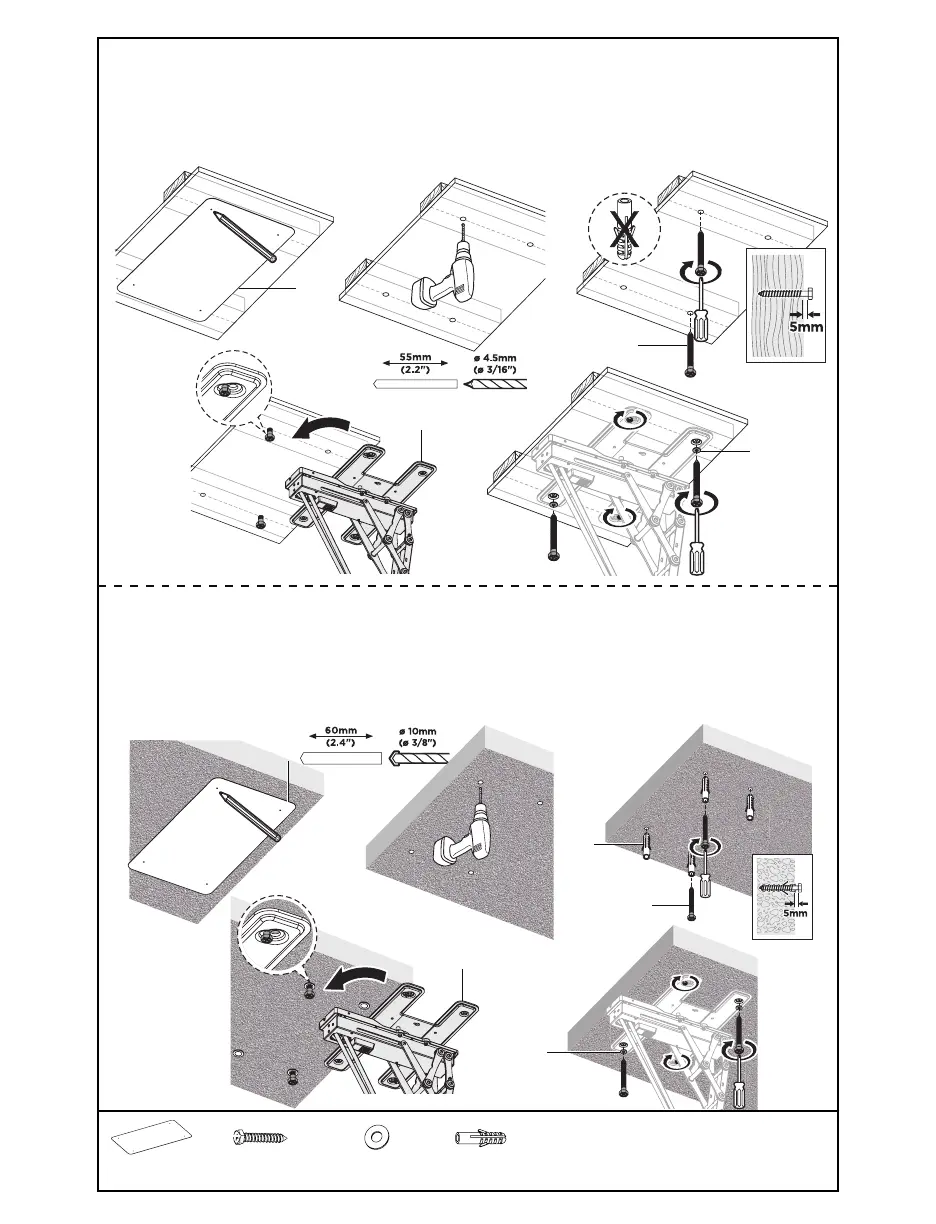 a 3/16” (4.5mm) drill bit. Insert two ST6.3x55mm Screws (W-A) inline with the keyhole slots on the mount,