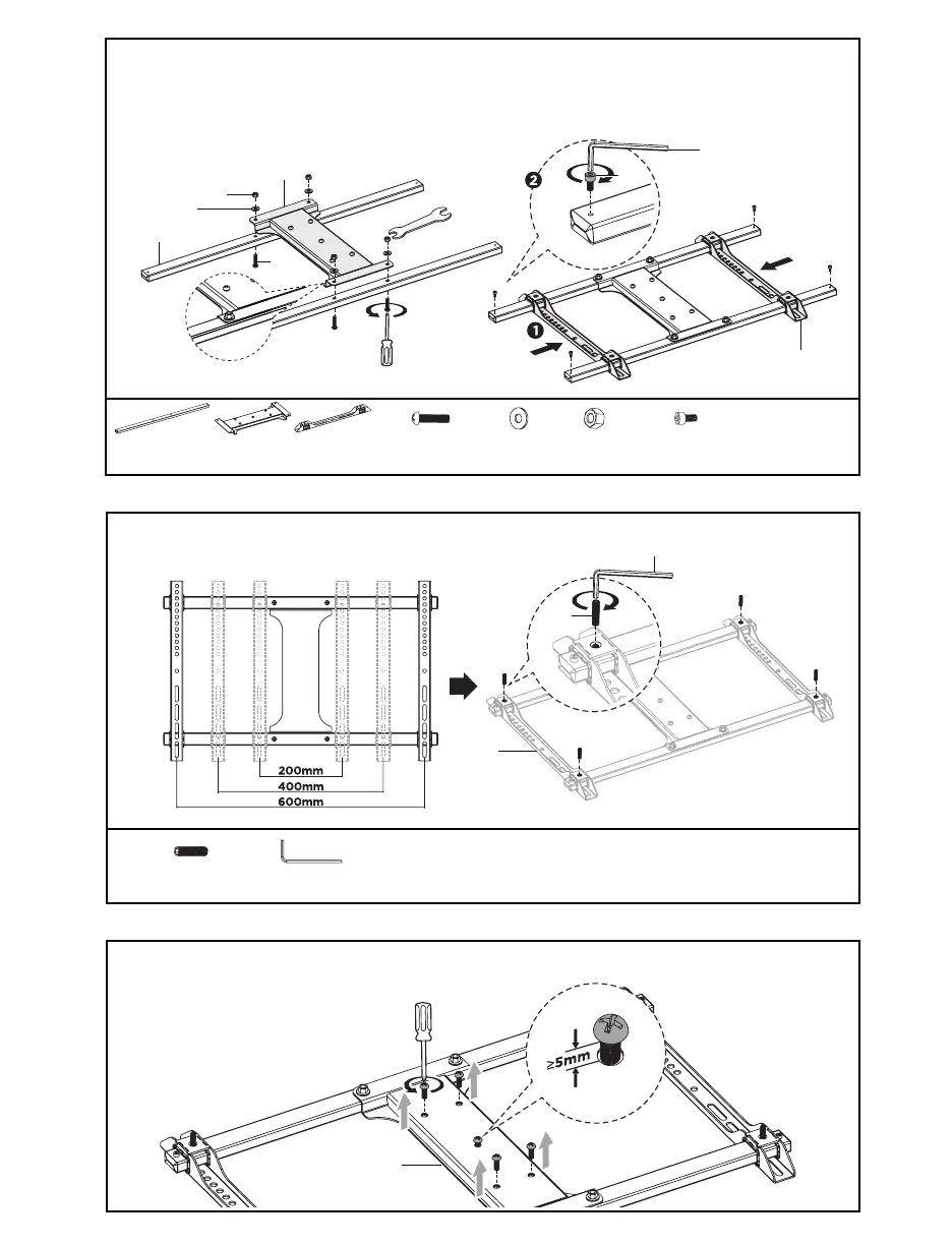 Adjust VESA Brackets (E) spacing to match TV mounting holes, and lock in place using M6x10mm