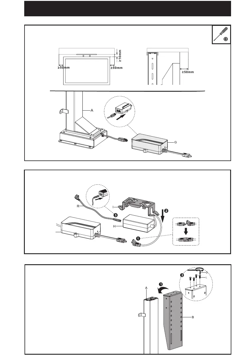 Before starting, ensure that the TV will have at least 2” (50mm) or room on each side and in