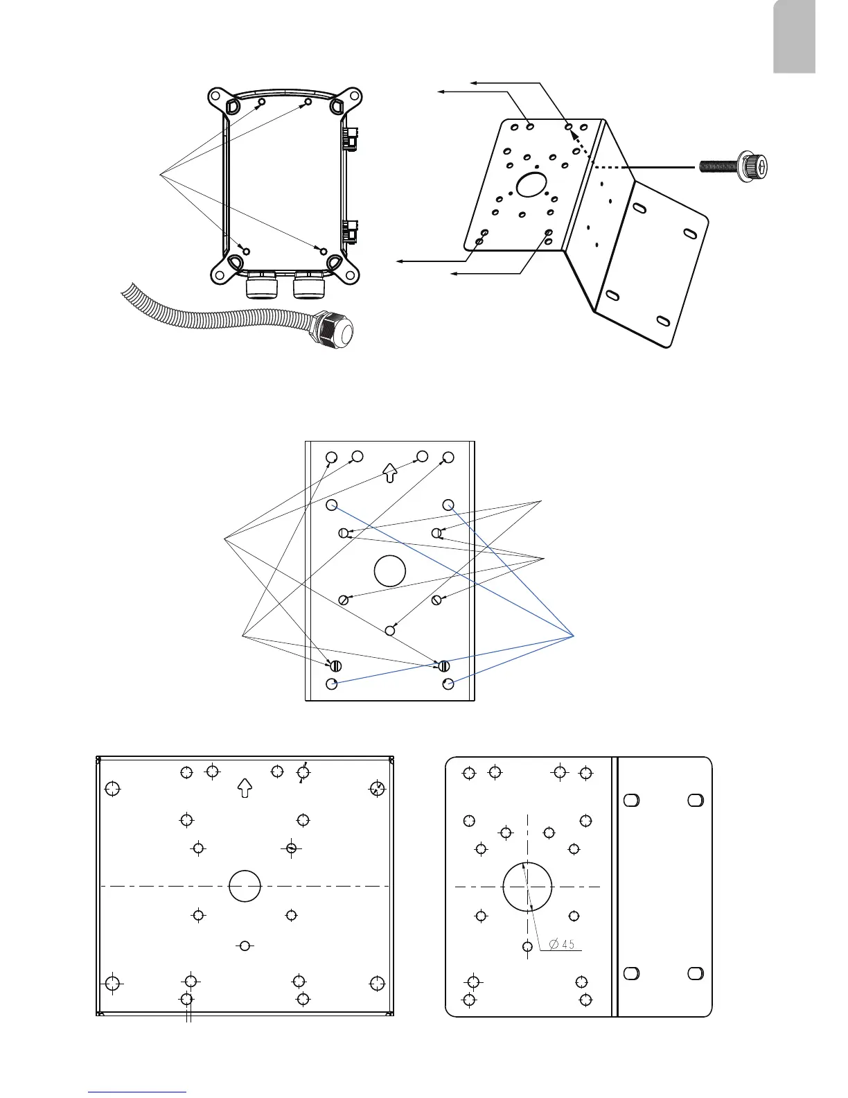 The mounting hole denition is illustrated below. The same mounting hole pattern apply to all pole-
