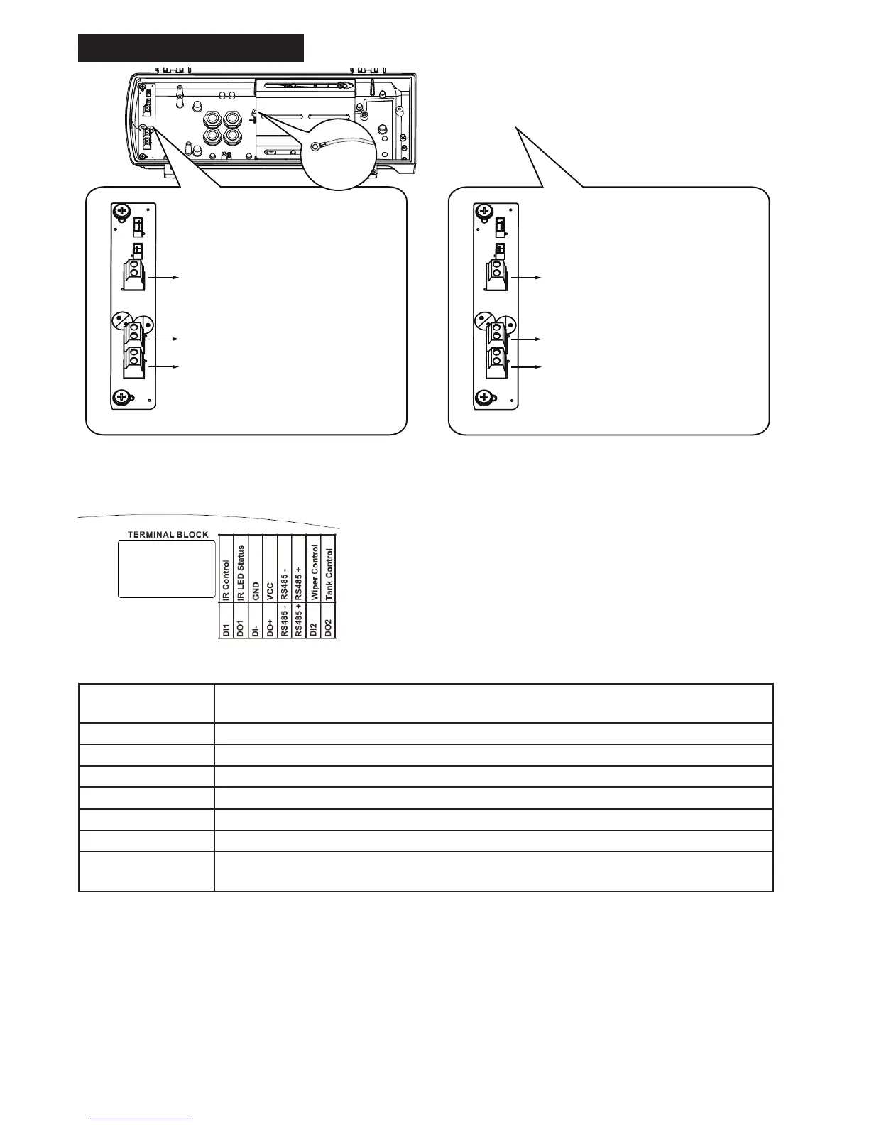 RS485+ RS485+, RS485 can be used to control IR illuminator beam angles, etc.