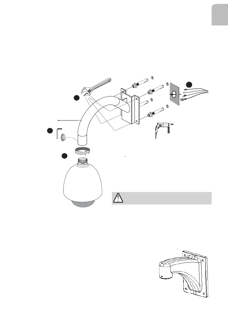 1. Route power lines and other cables through the wall and the bracket.