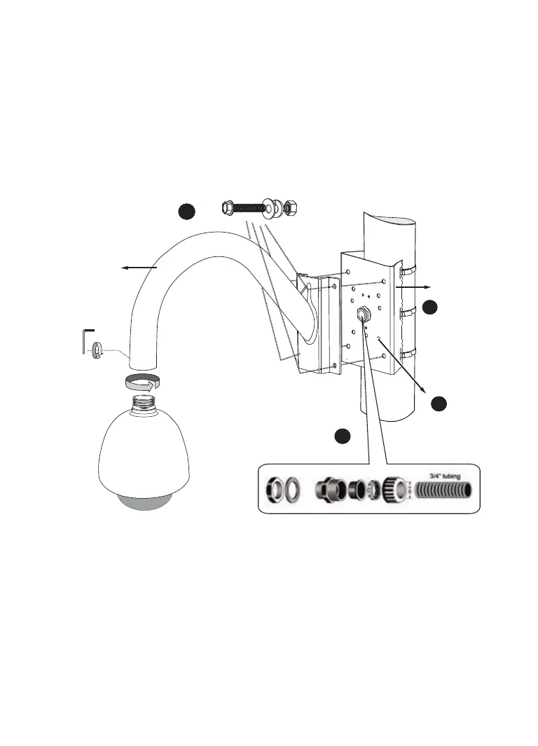 through conduits (separately purchased), and install the cable gland to the pole mount