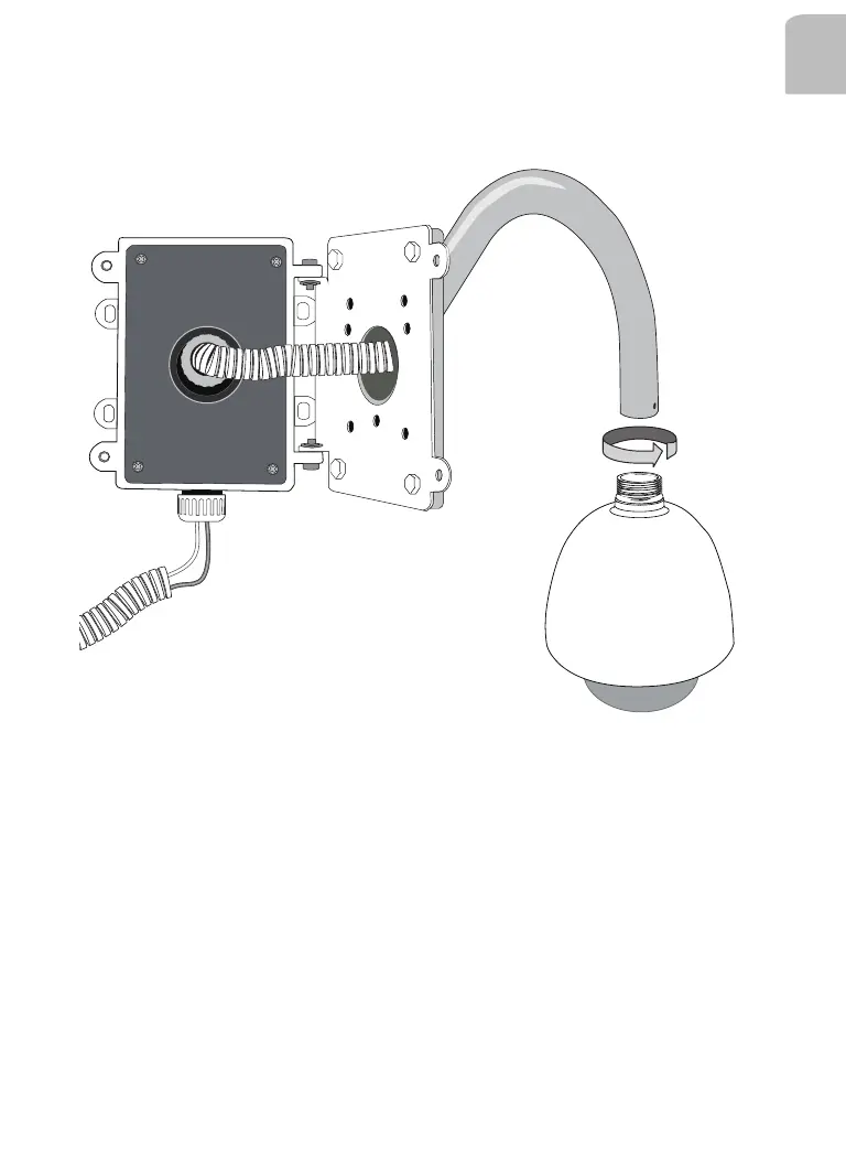 3. Use the included hex head bolts to secure a gooseneck bracket to the junction box.