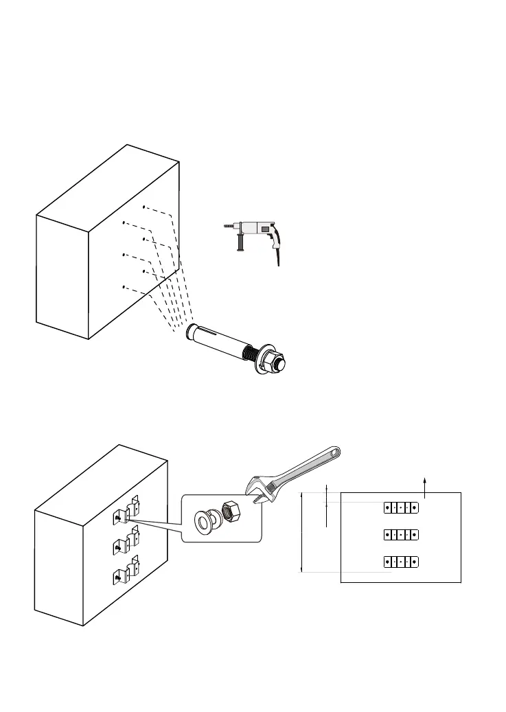 3. Install the brackets to wall using the hex nuts and washers from the sleeve anchors.