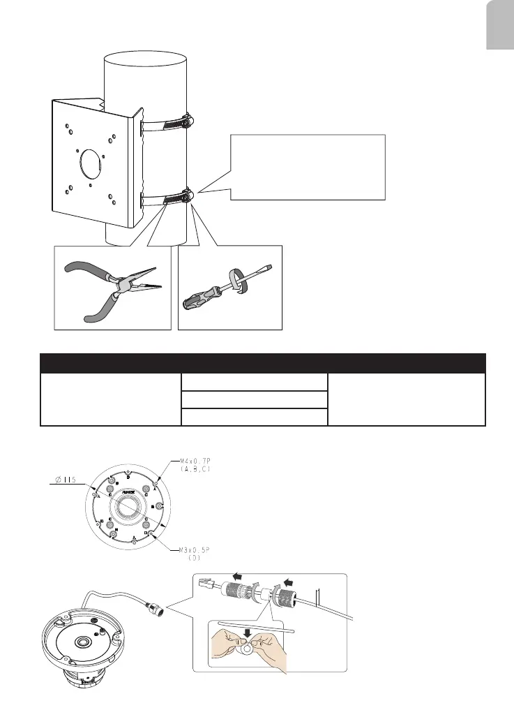 4. Tighten the straps using a pincer plier and a at blade screwdriver.