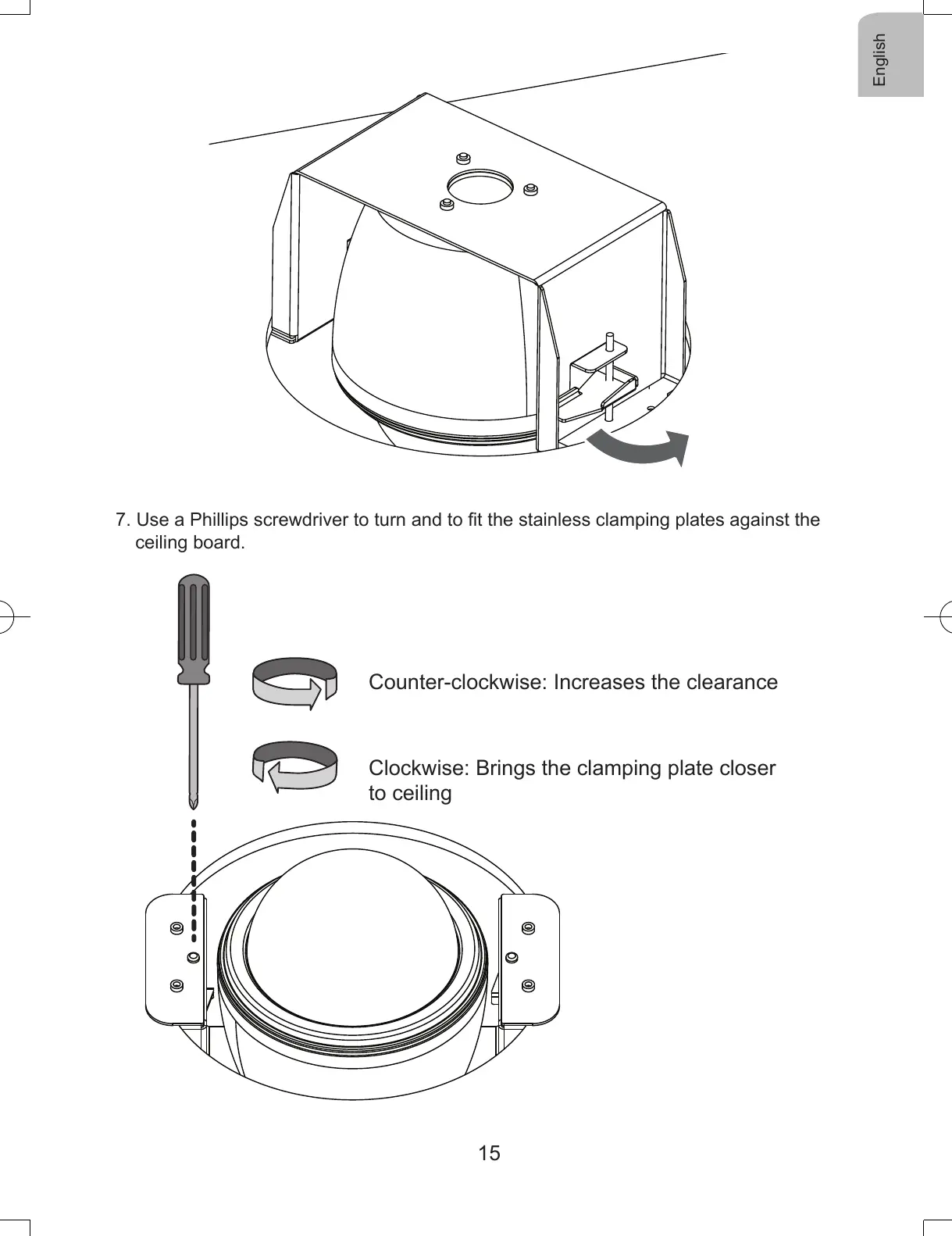 7. Use a Phillips screwdriver to turn and to t the stainless clamping plates against the