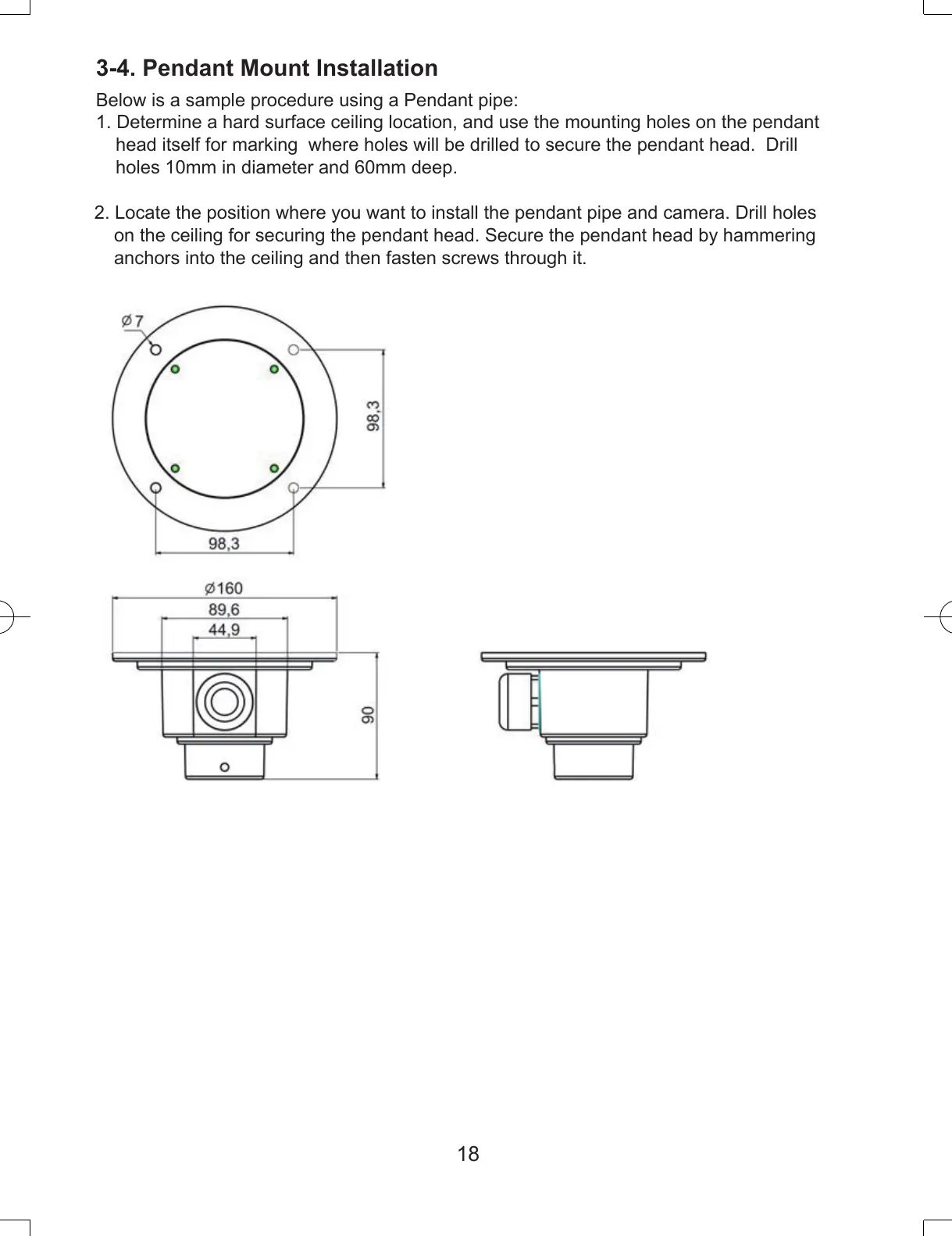 1. Determine a hard surface ceiling location, and use the mounting holes on the pendant