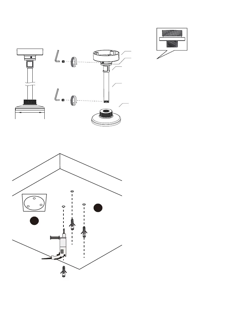 1. Determine a hard surface ceiling location, and use the included alignment sticker for