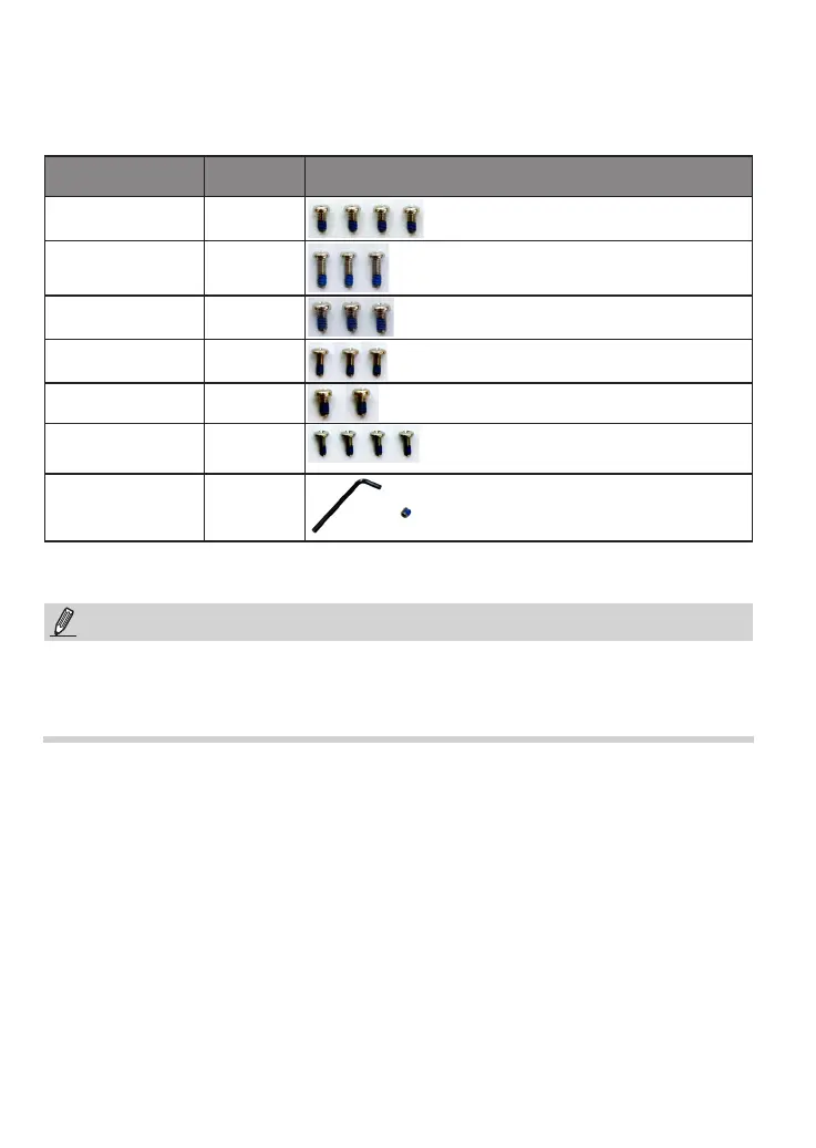 Refer to the table below for the description of the included screws: