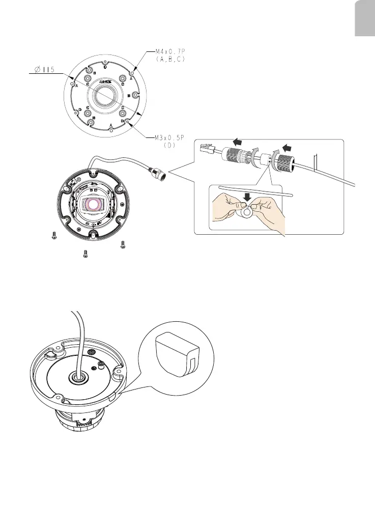 8. Pull the cables through the pendant pipe, and install the waterproof cable gland. Install
