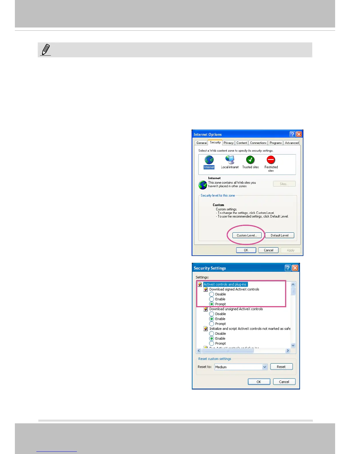 2. If you see a dialogue box indicating that your security settings prohibit running ActiveX