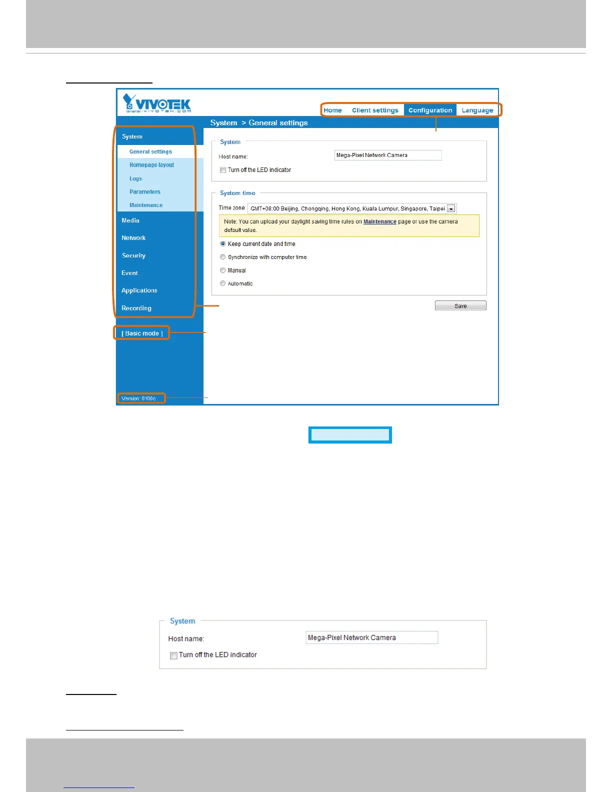 This section explains how to congure the basic settings for the Network Camera, such as the