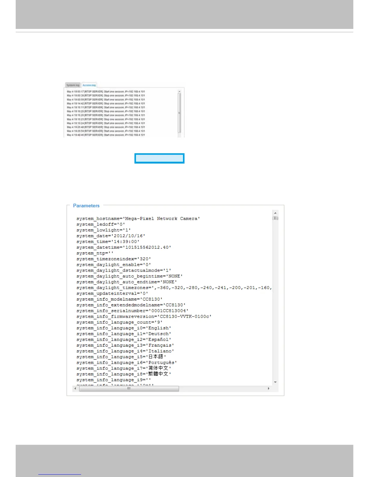 administrators) in a chronological order. The access log is stored in the Network Camera’s buffer and