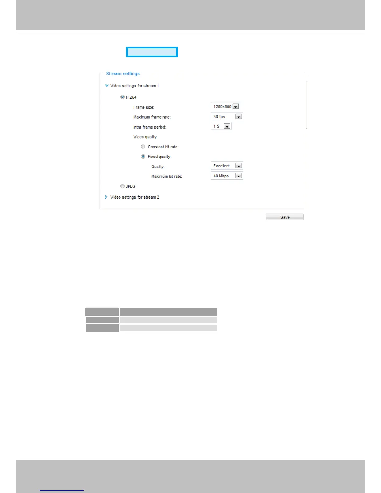 Video > Stream settings