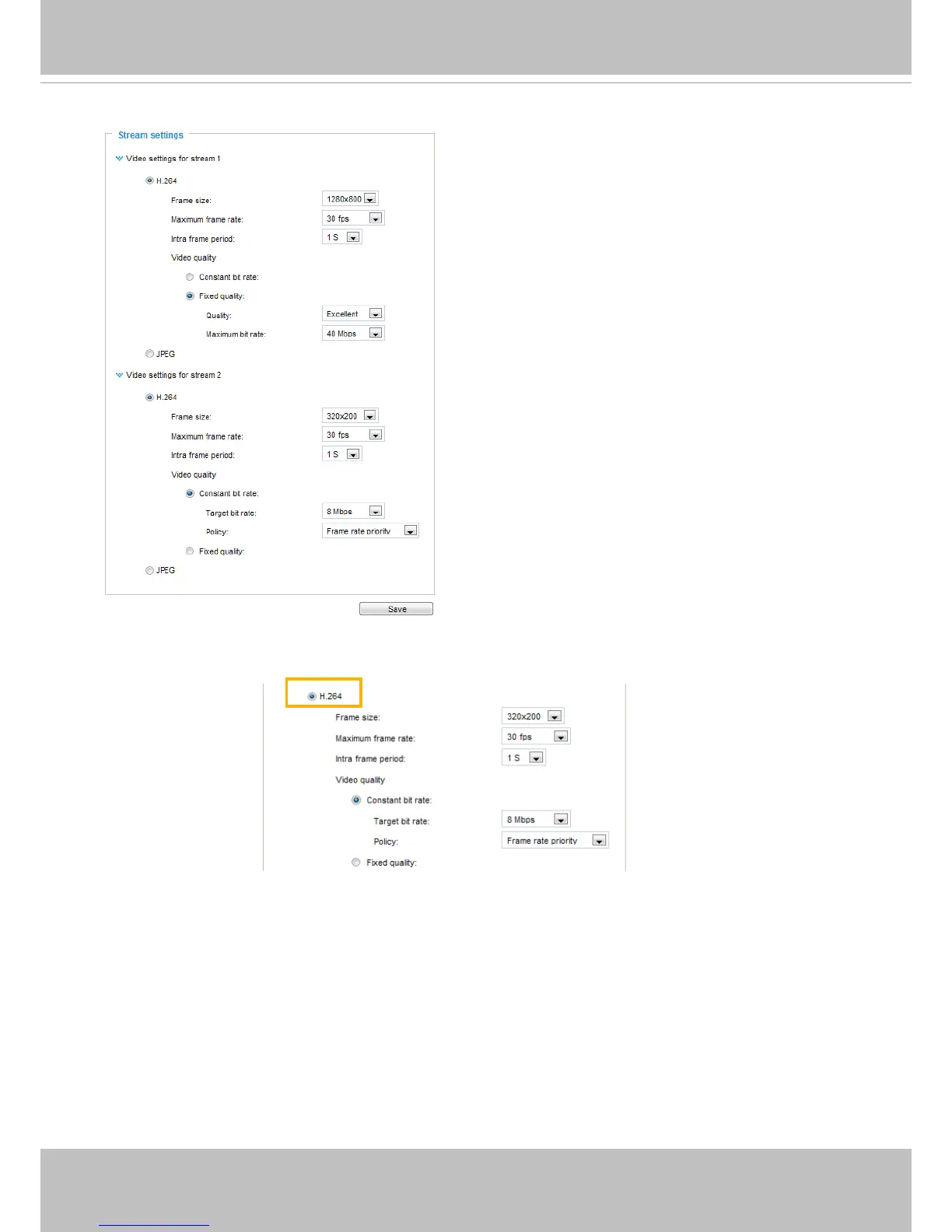bit rate for live viewing on web browsers. Note that a larger frame size takes up more bandwidth.