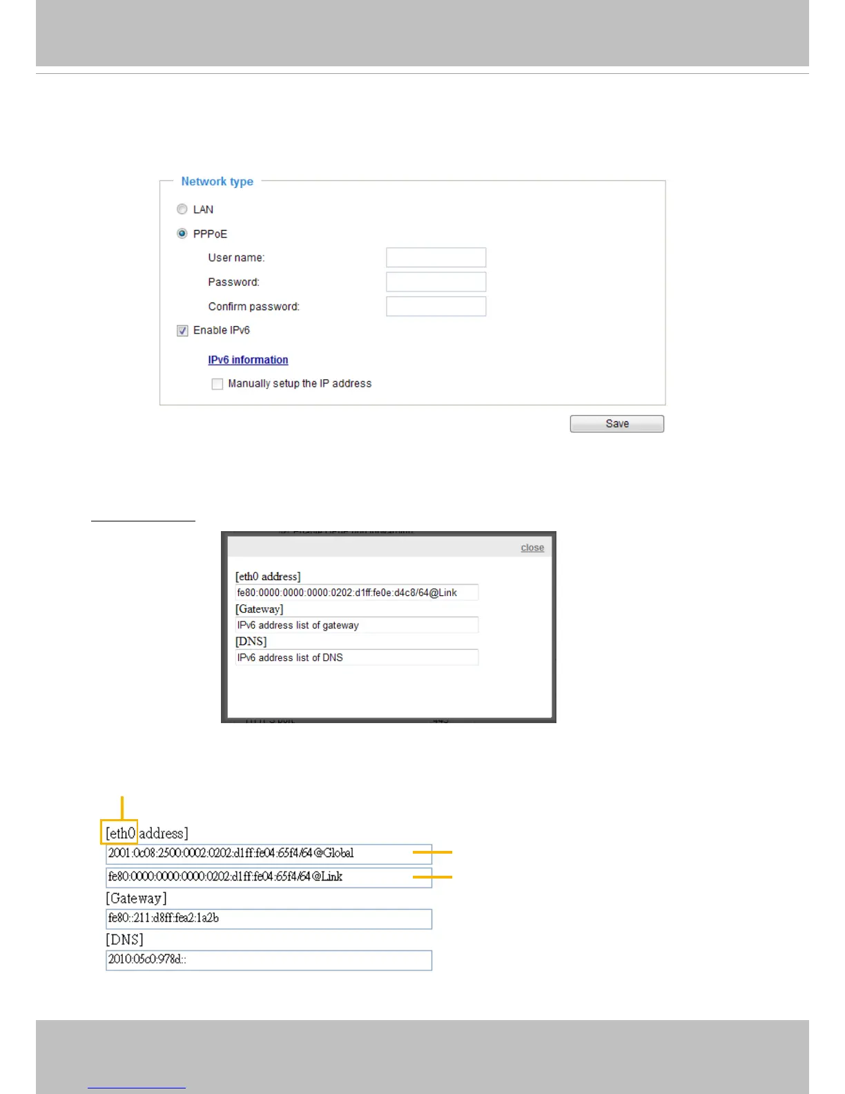 IPv6 Information: Click this button to obtain the IPv6 information as shown below.