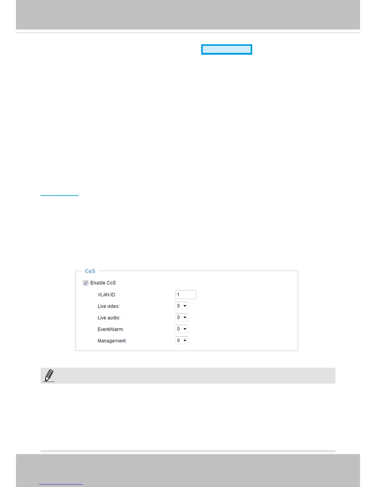 Below is the setting column for CoS. Enter the VLAN ID of your switch (0~4095) and choose the priority