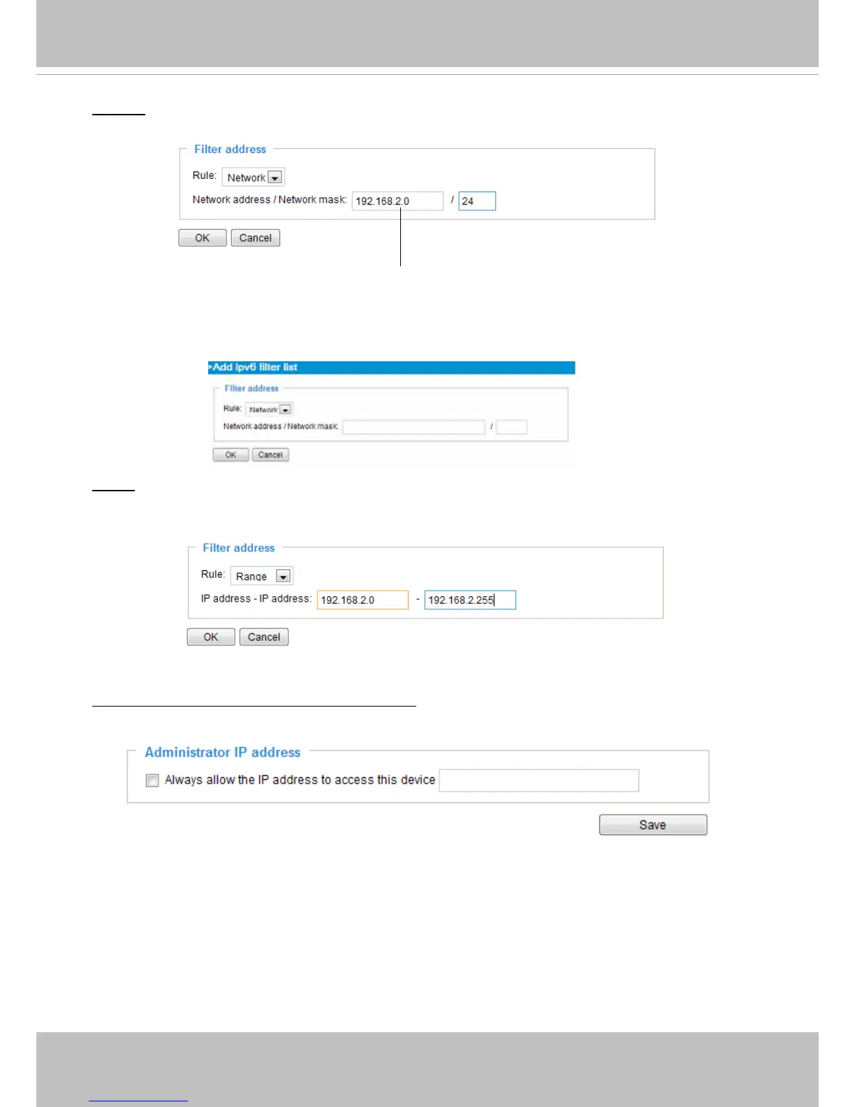 IP address in this eld to make sure the Administrator can always connect to the device.