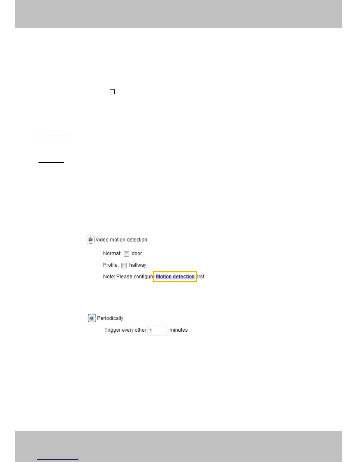 ured to use the Network Camera’s built-in motion detection mechanism or external digital inputs.