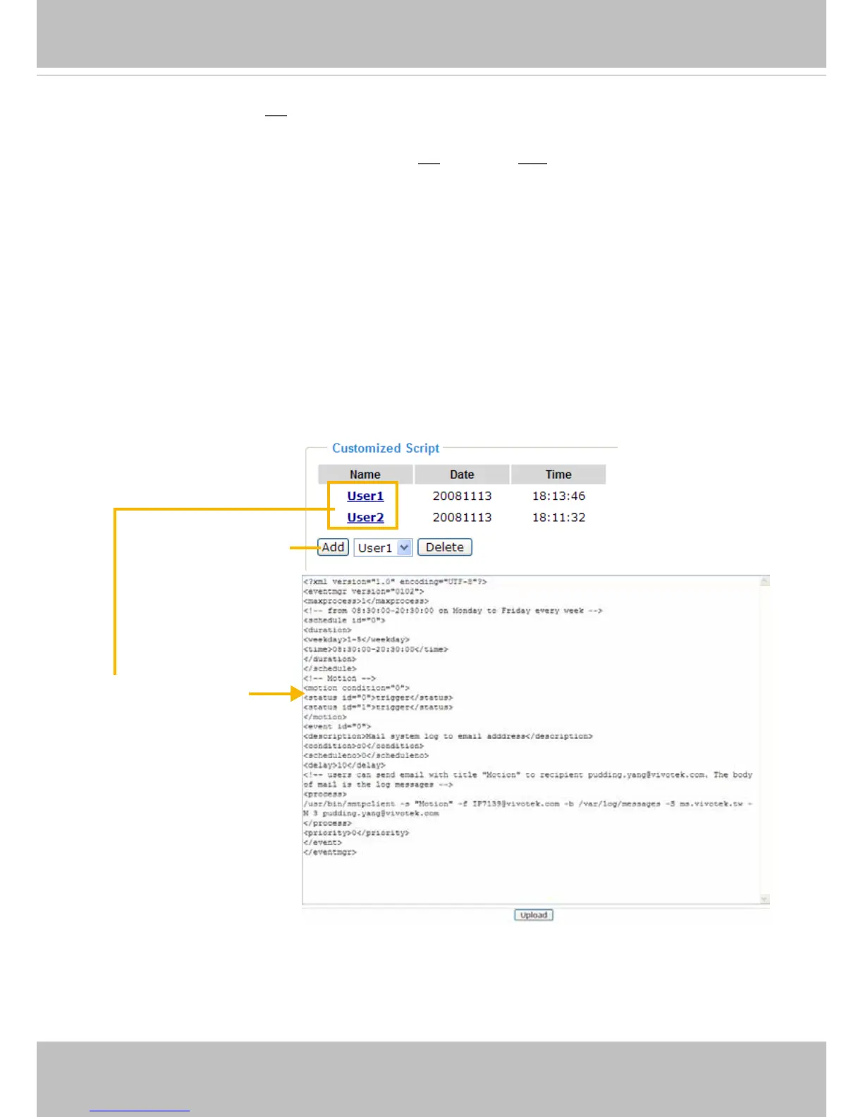This function allows you to upload a sample script (.xml le) to the webpage, which will save your time on