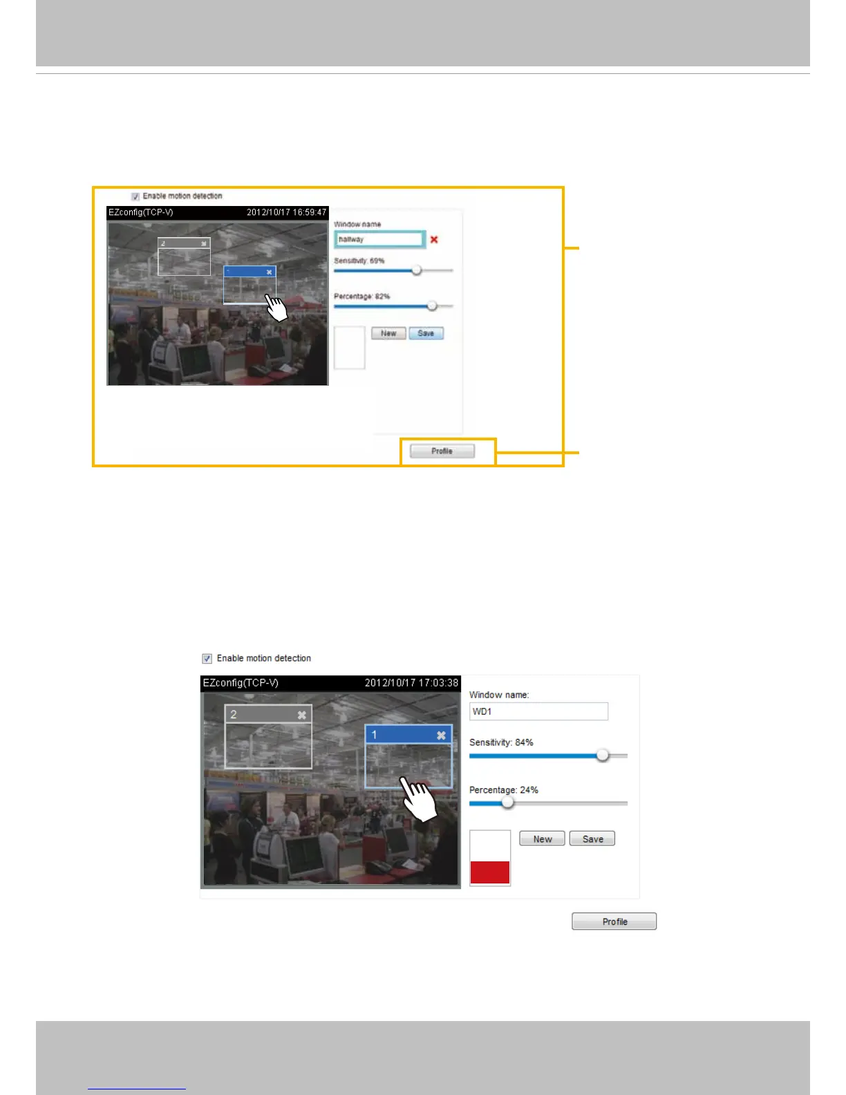 1. Click New to add a new motion detection window.