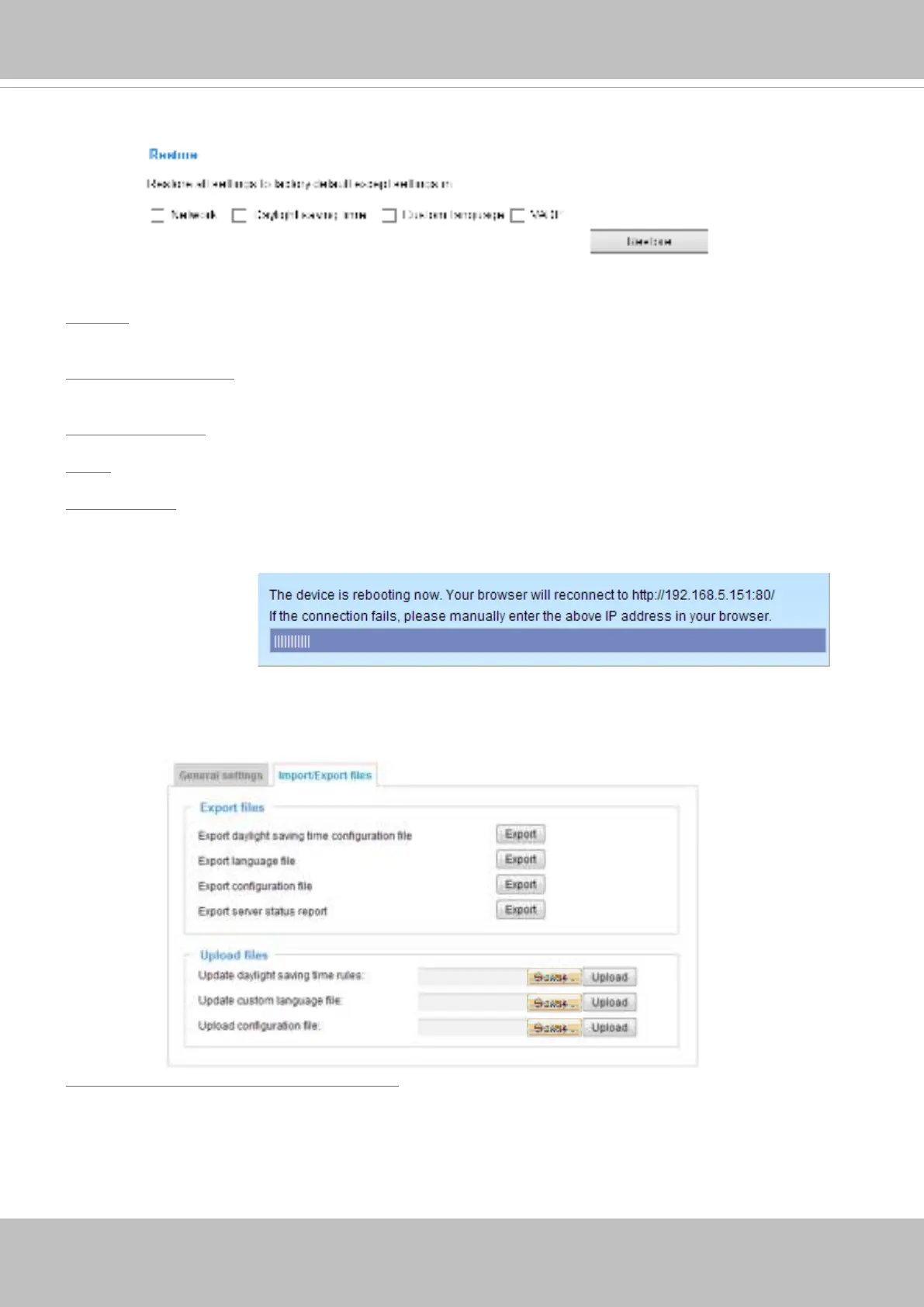 This feature allows you to Export / Update daylight saving time rules, custom language le, conguration