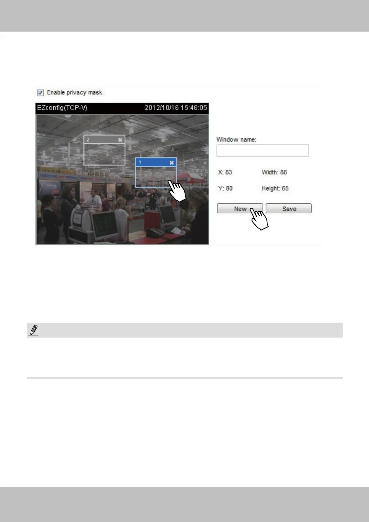 Up to 5 privacy mask windows can be congured on the same screen.