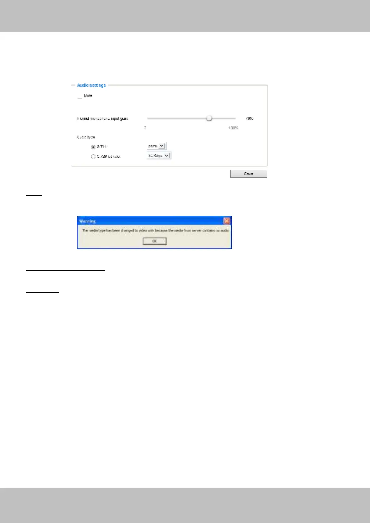 Mute: Select this option to disable audio transmission from the Network Camera to all clients. Note that