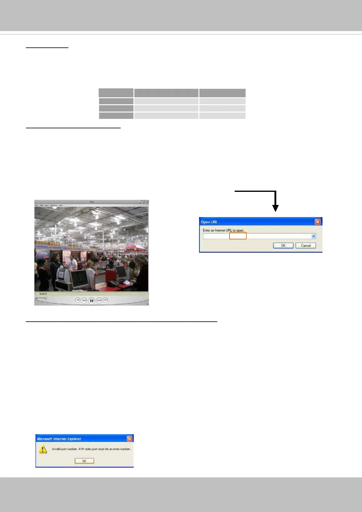 H.264 and use the following RTSP URL command to request transmission of the streaming data.