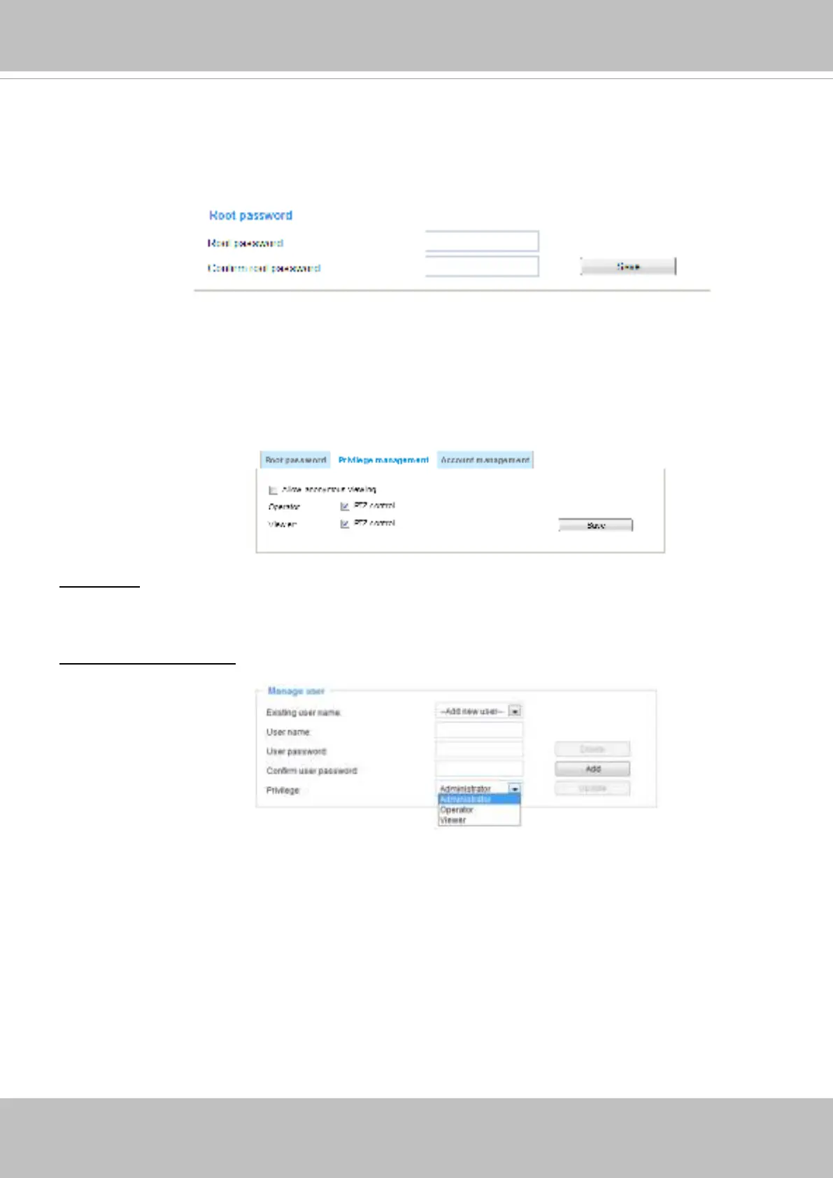 PTZ control: You can modify the management privilege for operators or viewers. Select or deselect the