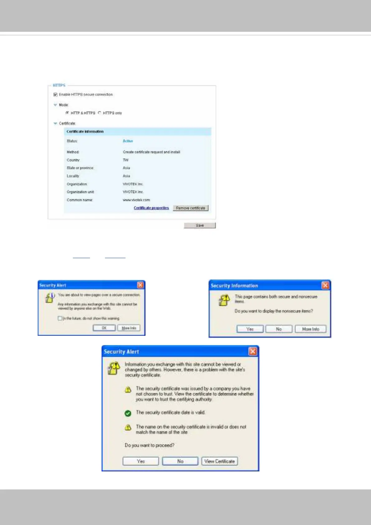 Alert dialogs will pop up. Click OK or Yes to enable HTTPS.