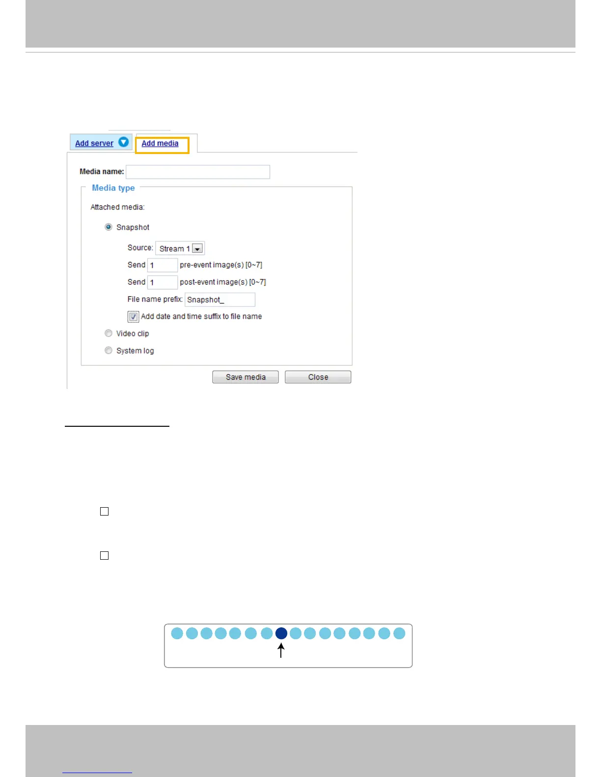 of media types available: Snapshot, Video Clip, and System log.