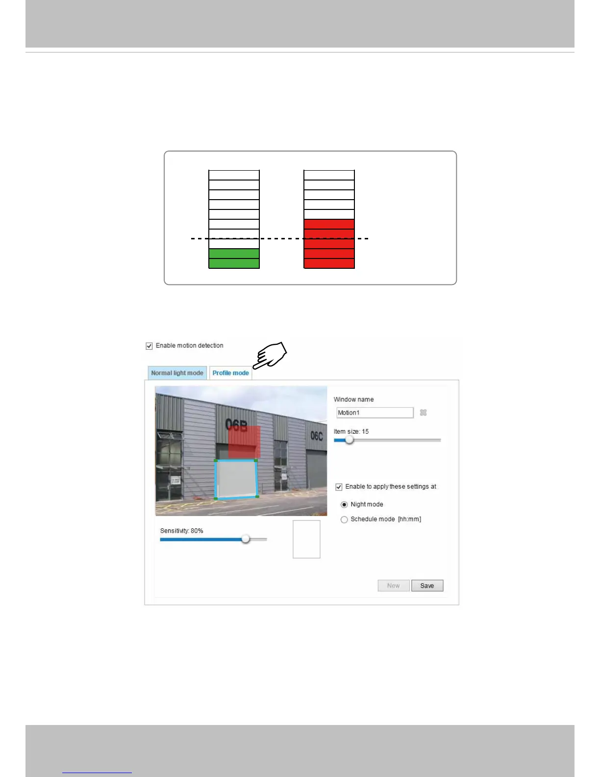 lighting condition or for the off-office hours), please click Profile to open the Motion Detection Profile