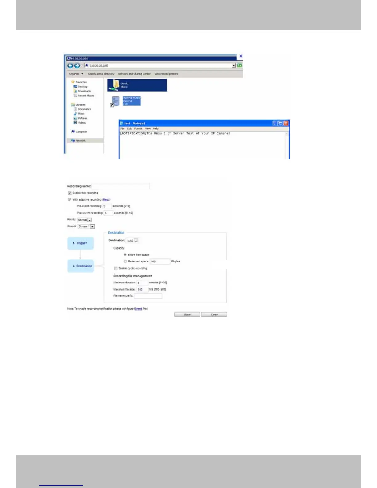 ■ Recording file management: You can manually assign the Maximum duration and the Maximum