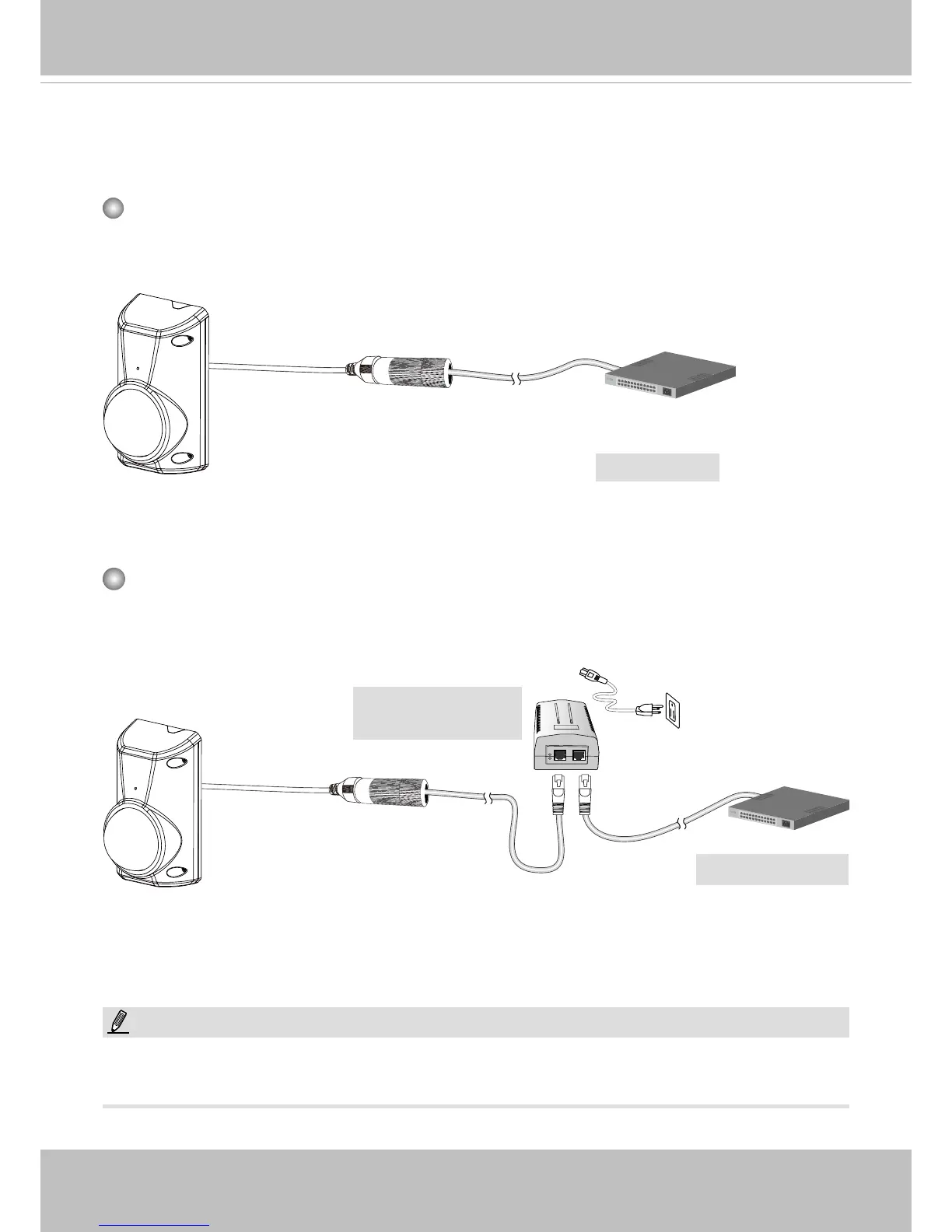 Use a PoE power injector (optional) to connect between the Network Camera and a non-