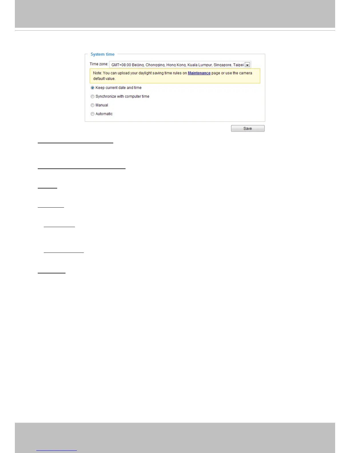 Manual: The administrator can enter the date and time manually. Note that the date and time format are