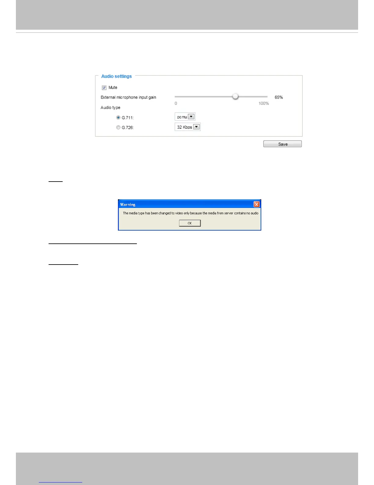 Mute: Select this option to disable audio transmission from the Network Camera to all clients. Note
