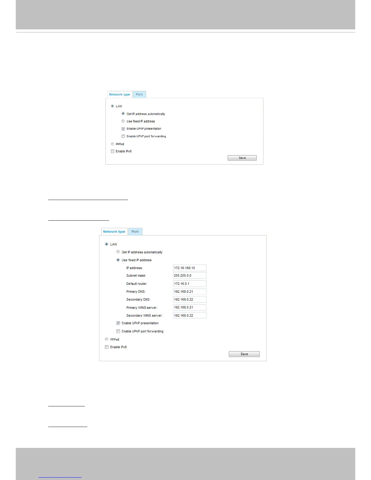 Use fixed IP address: Select this option to manually assign a static IP address to the Network