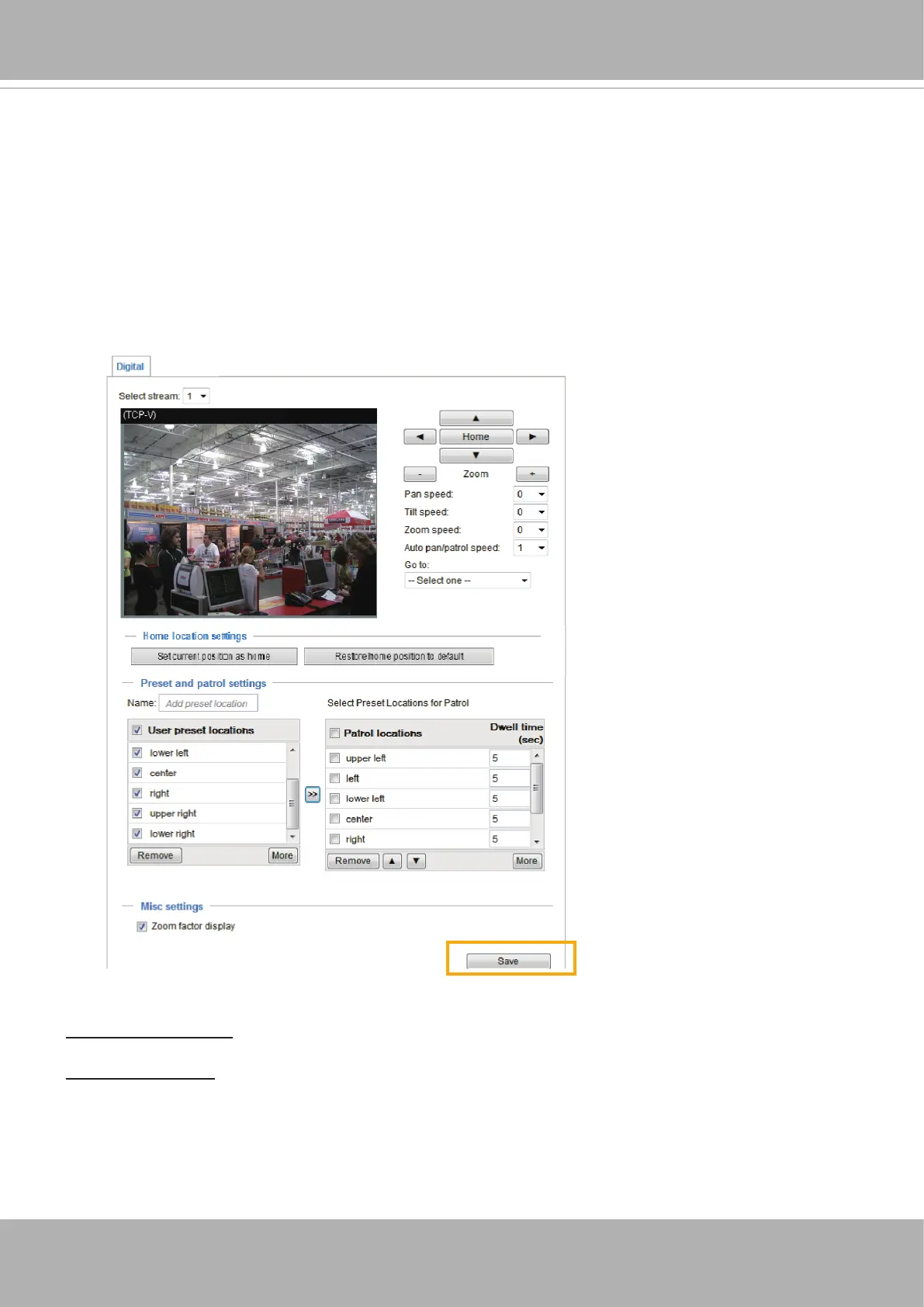 When completed with the e-PTZ settings, click Save to enable the settings on this page.