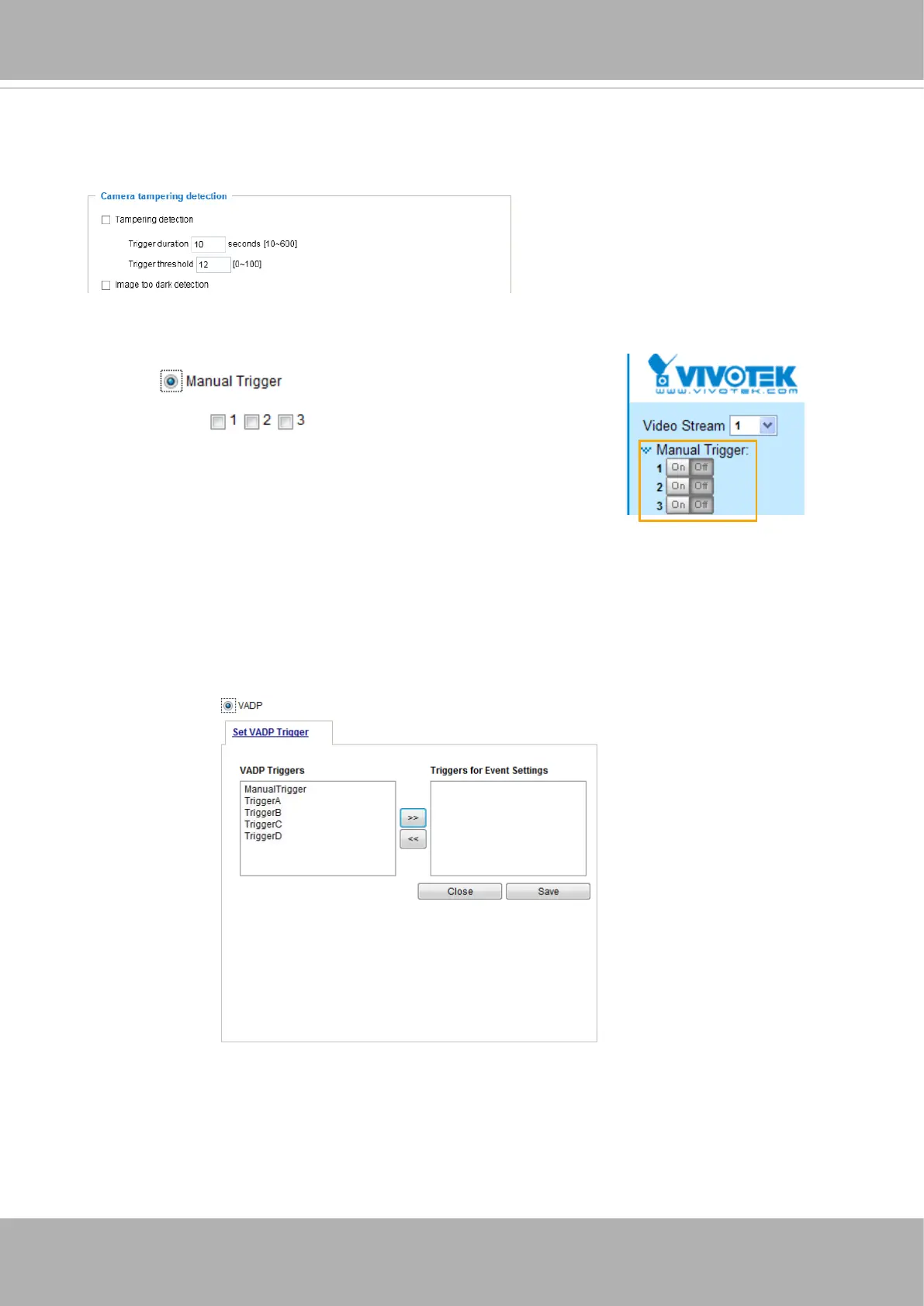 This option allows the Network Camera to trigger when the camera detects that is is being tampered