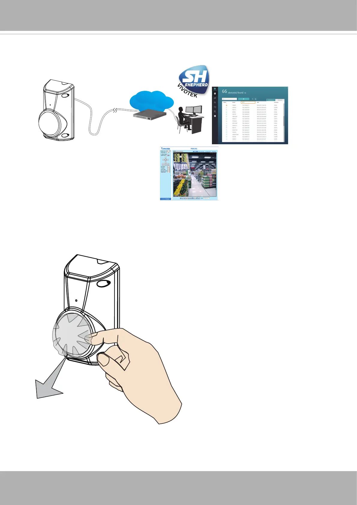 8. Connect the Ethernet cable to a PoE mid-span or switch. Install the Shepherd utility