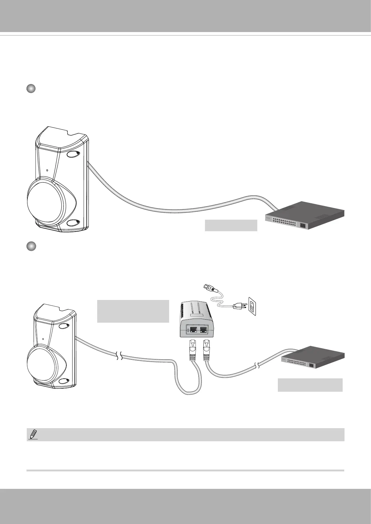 Use a PoE power injector (optional) to connect between the Network Camera and a non-