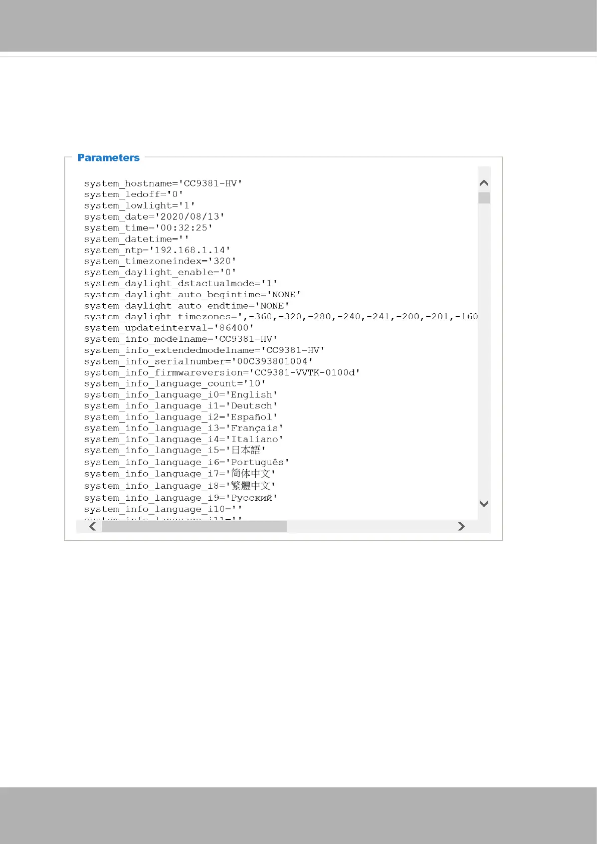 System > Parameters
