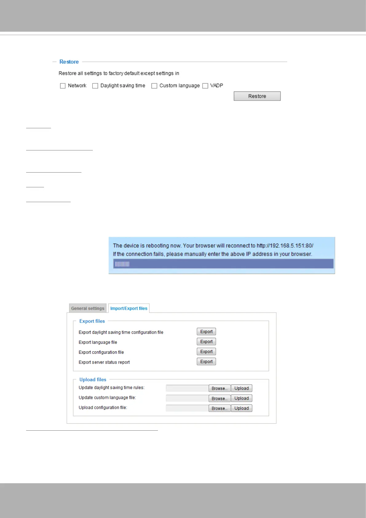 This feature allows you to Export / Update daylight saving time rules, custom language le, conguration