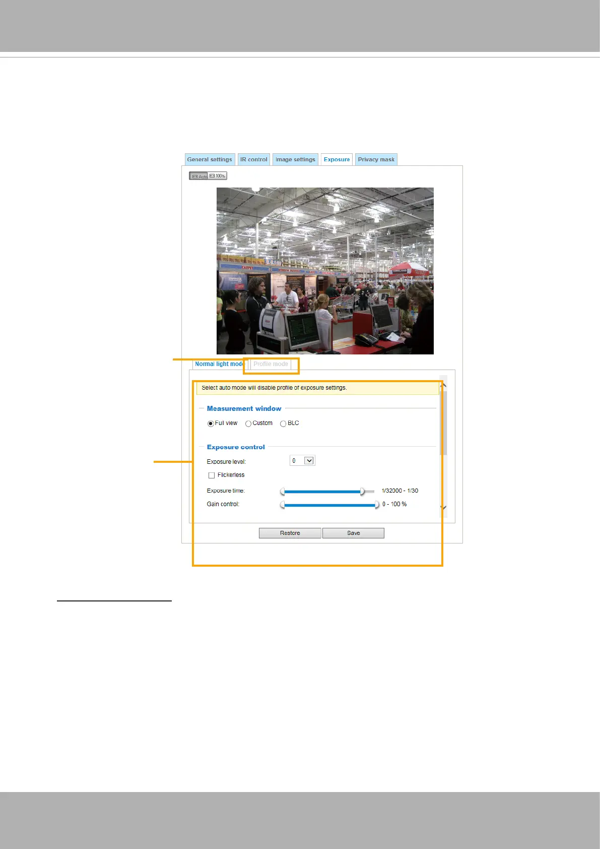 On this page, you can congure the Exposure measurement window, Exposure level, Exposure