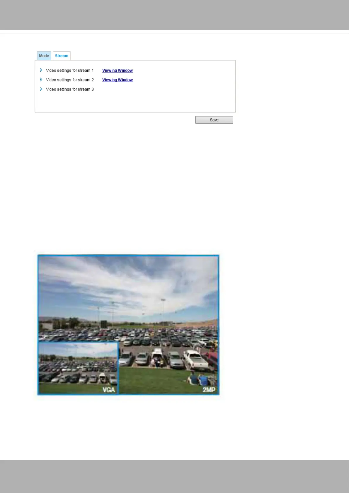 ■ Stream 1: Users can dene the "Region of Interest" (viewing region) and the "Output Frame Size"