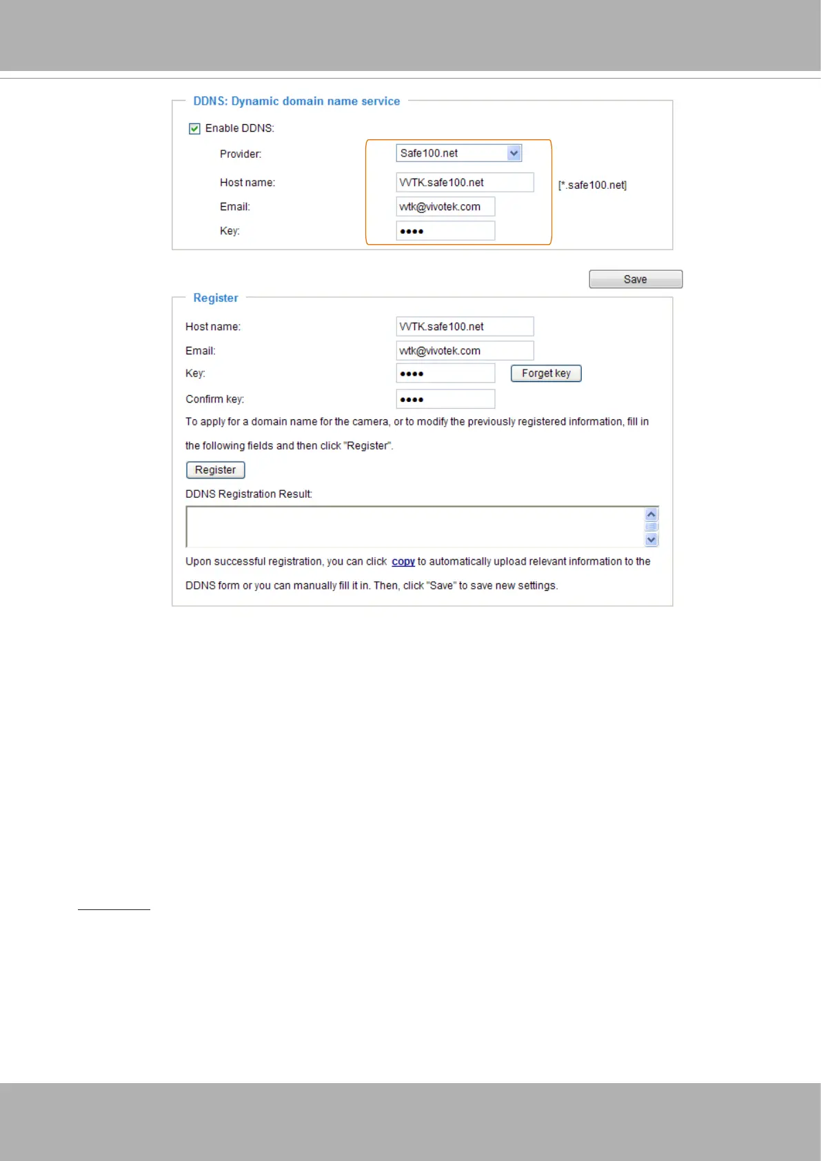 2. In the Register column, ll in the Host name, Email, Key, and Conrm Key; then click Register.