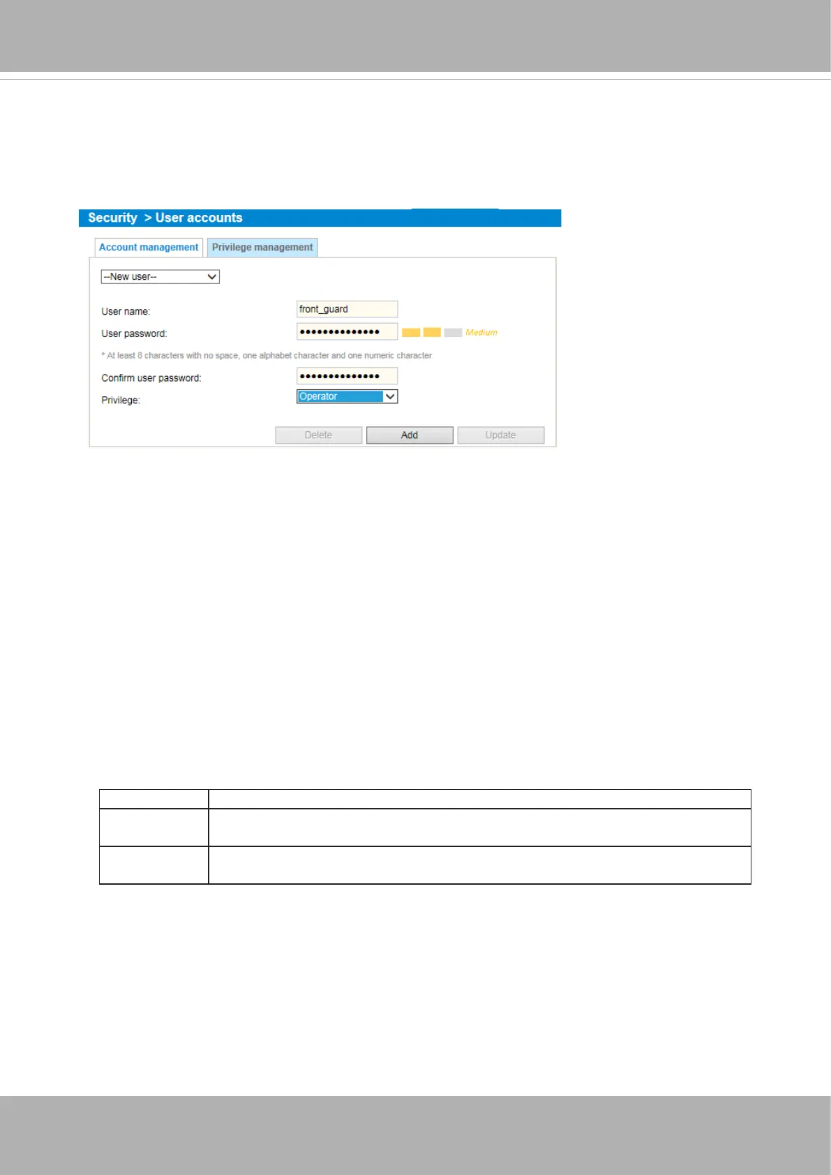 3. Select the privilege level for the new user account. Click Add to enable the setting.
